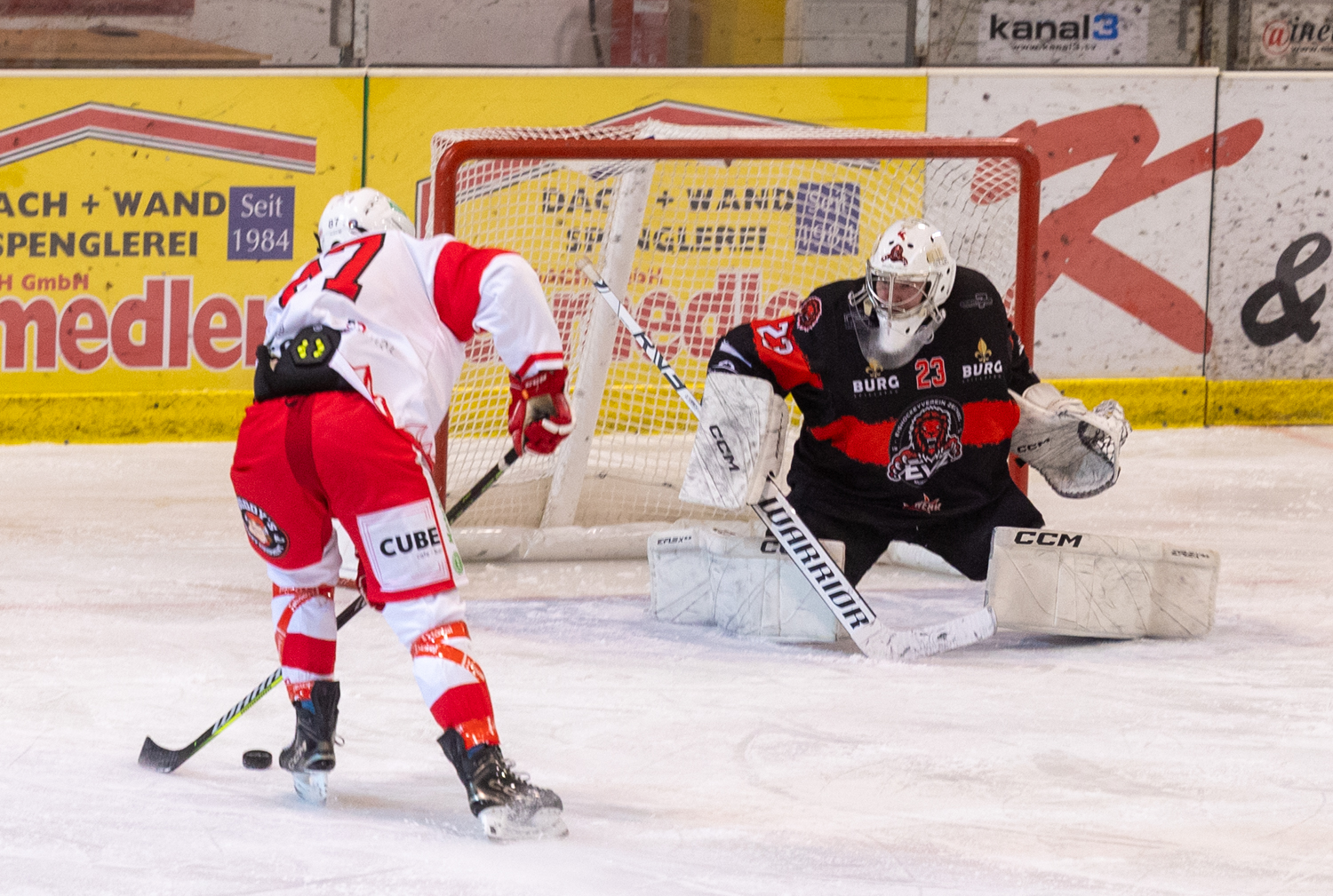 Dieser stand nach Wiederbeginn weiter im Fokus, hielt mit seinen Paraden den Löwen den Rücken frei und gab ihnen dadurch immer wieder die Gelegenheiten zu gefährlichen Kontern. In der 23. Spielminute war es die Kombination Michi Grüneis – Marco Kuntze – Miha Logar, die unser slowenischer Import perfekt zum 5:1 und seinem Doppelpack nutze!