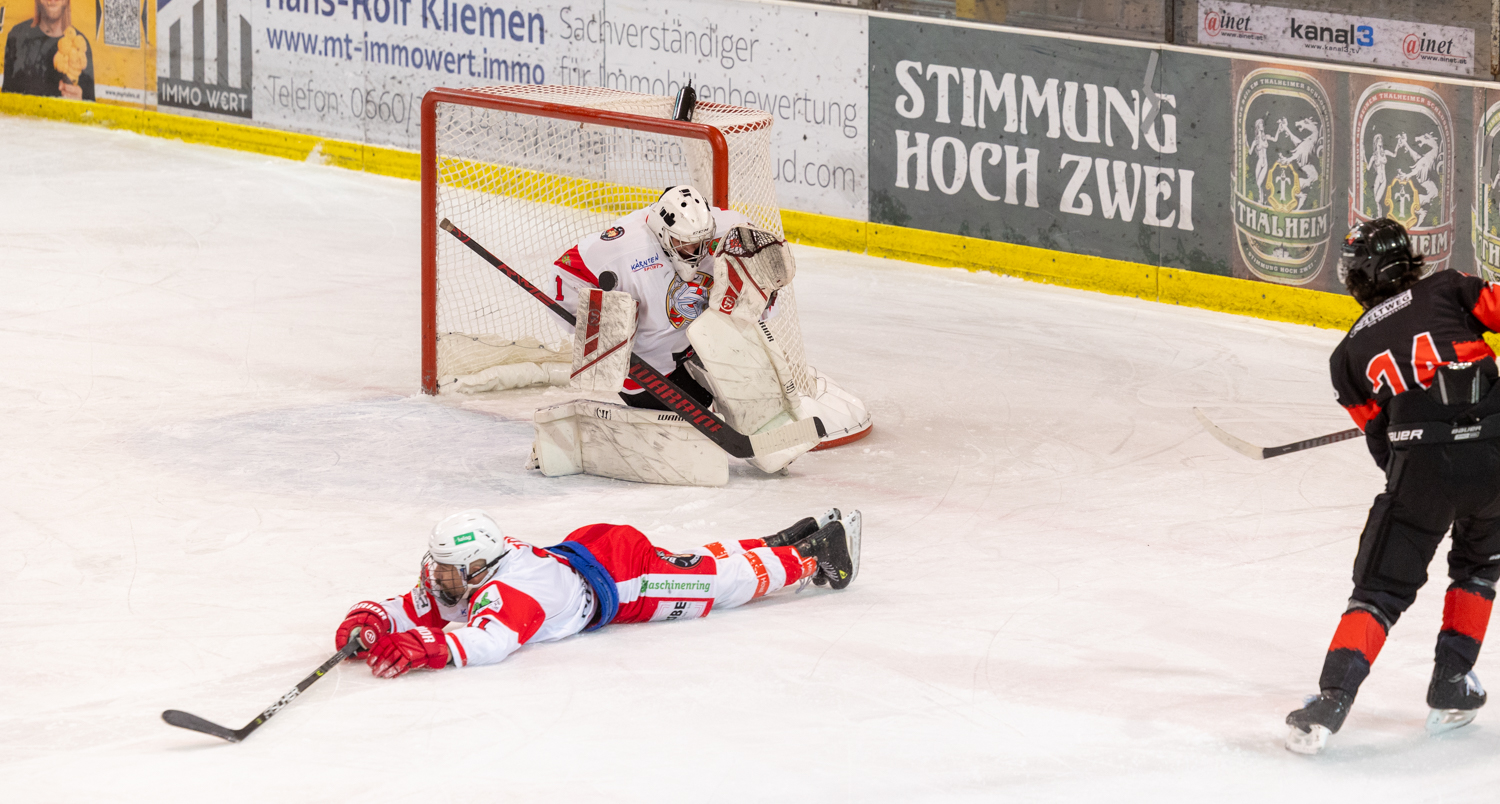 12 Sekunden vor Drittelende holte Ferlach Coach Philip Wernicke seinen Goalie das erste Mal vom Eis, um mit einem Mann mehr noch die Wende zu schaffen, doch die Löwen brachten den, doch überraschenden, Vorsprung, auch durch die starken Saves von Andi Brenkusch, über die Zeit.