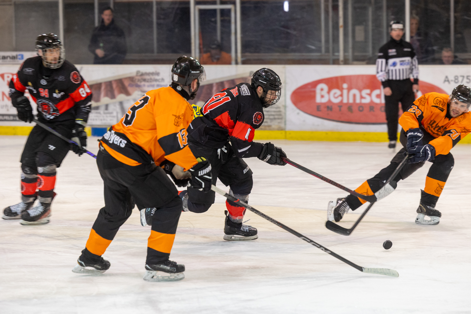 Die Lions mühten sich im ersten Abschnitt kontrolliert nach vorne zu kommen, hatten mehr Spielanteile aber noch nichts Zwingendes zum Vorweisen. In der 9. Minute waren aber trotzdem die Ärmel beim Tabellenführer oben, über Grex Seidl und Tommy Reiter kam die Scheibe zum Playing-Coach der Lions, Max Stolz, der das Spielgerät über die Linie brachte.