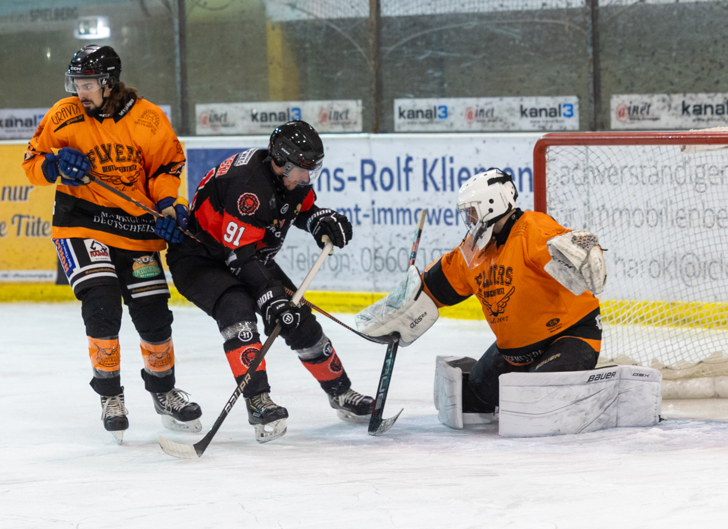 Von den Flyers war nicht viel zu sehen, zu gut stand die Defense der Lions. Im zweiten Abschnitt erhöhten die die Löwen die Schlagzahl, brüllten lauter und ein Doppelschlag durch Tom Reiter und Grex Seidl, innerhalb von 44 Sekunden, schien das Spiel auf Schiene gebracht zu haben.