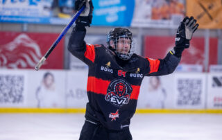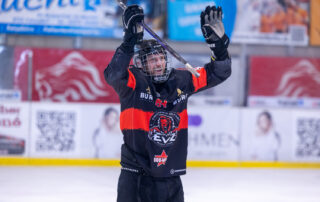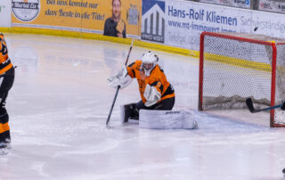 Lena Feeberger wurde kaum gefordert, war aber im letzten Abschnitt mit einem spektakulären Save zur Stelle, als sie den Puck aus einem Meter Entfernung sicher arretierte! Vorne ging das Bestschießen munter weiter und das Drittel ging mit sechs zu null an die Gastgeber!