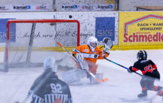 Im ersten Spiel des Tages konnte man die Graz 99ers Team orange mit 8:4 besiegen. Gegen die Steel Wings musste man sich ebenso geschlagen geben, wie gegen die Grazz99ers Juniors weiß und den USC Velden.