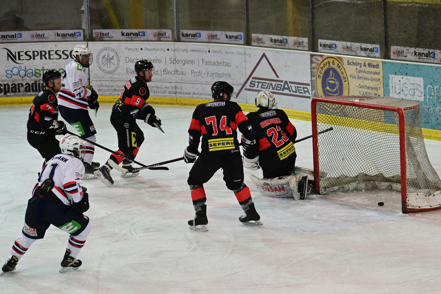Die Löwen gingen all in, holten Andi Brenkusch schon in der 57. Spielminute vom Eis, wollten das Glück förmlich zwingen, nur das war diesmal wieder ein Vogerl und setzte sich auf die Bank der Eggenberger.