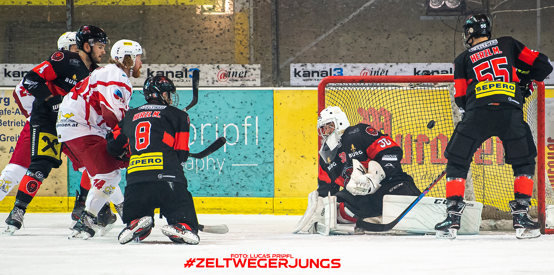 Verkehrte Welt in Abschnitt zwei, lediglich 68 Sekunden brauchte Pierre Graf um die Mannschaft von Kris Reinthaler in Front zu bringen. Die Löwen wehrten sich vehement, konnten immer wieder gute Chancen kreieren, aber bei Oliver Zirngast war Endstation. In der 29. Spielminute doppelte Stefan Trost nach und die Löwen waren noch mehr gefordert, die Krallen auszufahren. Kurz vor Drittelpause besorgte Daniel Forcher den lang ersehnten Anschlusstreffer, der den Zeltwegern, diesemal in den neuen, schwarzen Heimdressen von Ausrüster WARRIOR, wieder mehr Power gab.