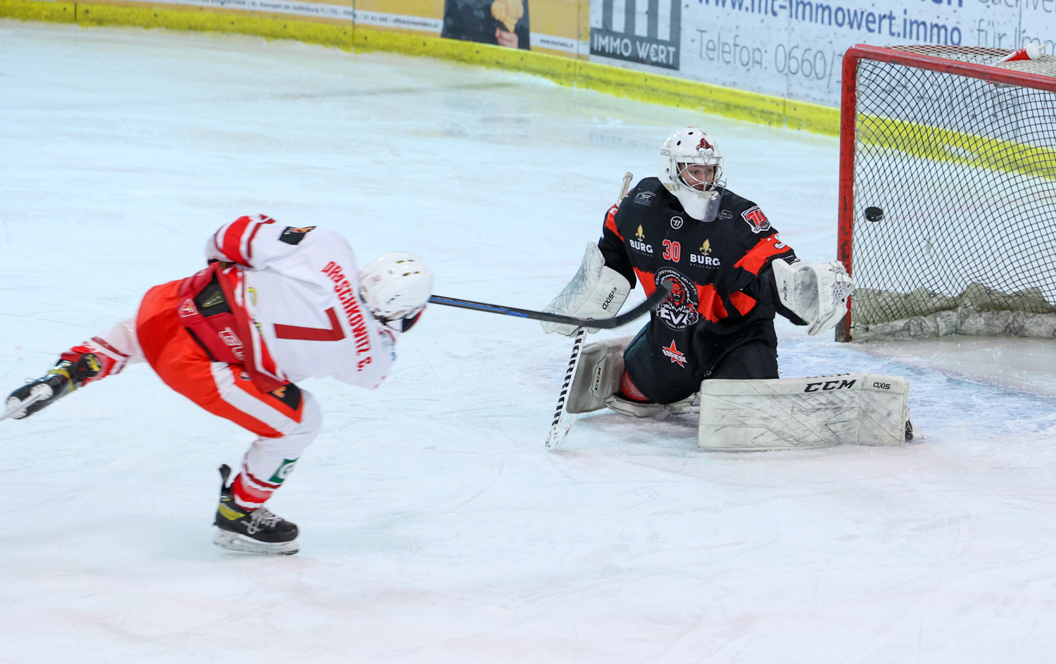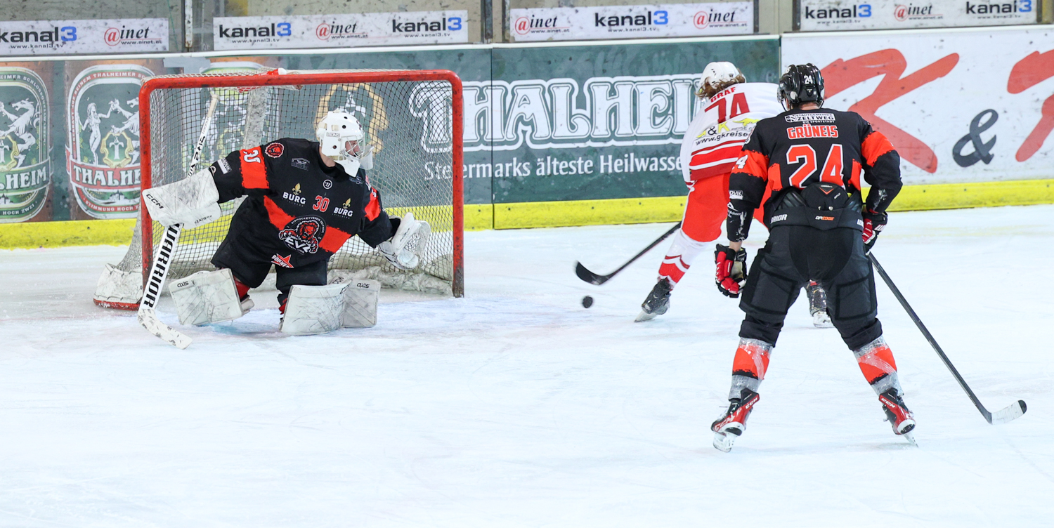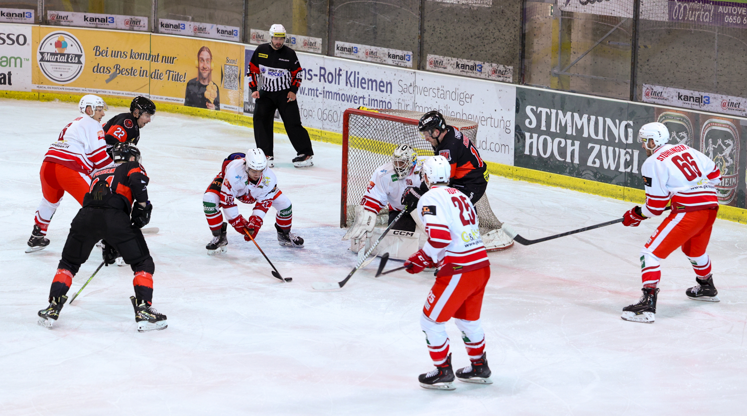 Diese hielt aber nur 18 Sekunden. Christoph Draschkowitz besorgte mitten in den Jubel der Zeltweg-Fans den Ausgleich. Es kam aber noch schlimmer. Daniel Forcher musste in die Kühlbox und Pierre Graf ließ sich die Powerplay-Chance nicht entgehen, erhöhte auf vier zu drei (32.). Das Momentum hatte damit auf die Kapfenberger Bank gewechselt. Diese legten nach zwei Turn-Overs nach und zogen auf sechs zu drei davon. Florian Hoppel (34.) und Spielertrainer Kris Reinthaler (37.) machten den zweiten Pausenstand fest.