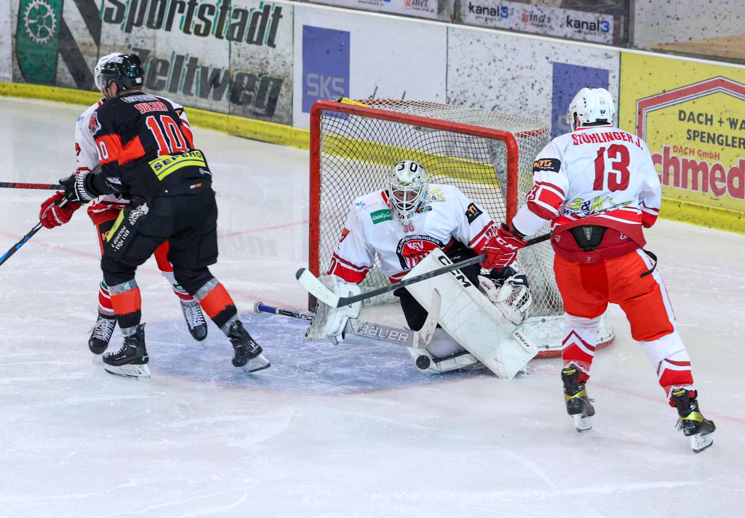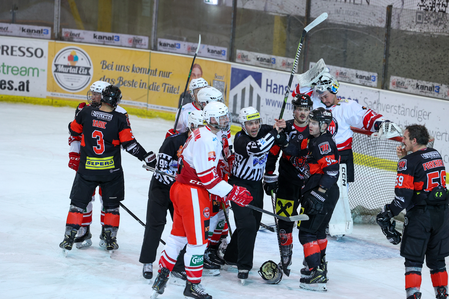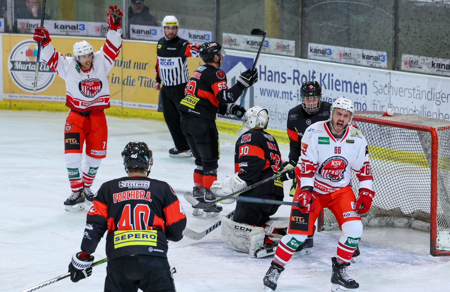 Diese hielt aber nur 18 Sekunden. Christoph Draschkowitz besorgte mitten in den Jubel der Zeltweg-Fans den Ausgleich. Es kam aber noch schlimmer. Daniel Forcher musste in die Kühlbox und Pierre Graf ließ sich die Powerplay-Chance nicht entgehen, erhöhte auf vier zu drei (32.). Das Momentum hatte damit auf die Kapfenberger Bank gewechselt. Diese legten nach zwei Turn-Overs nach und zogen auf sechs zu drei davon. Florian Hoppel (34.) und Spielertrainer Kris Reinthaler (37.) machten den zweiten Pausenstand fest.