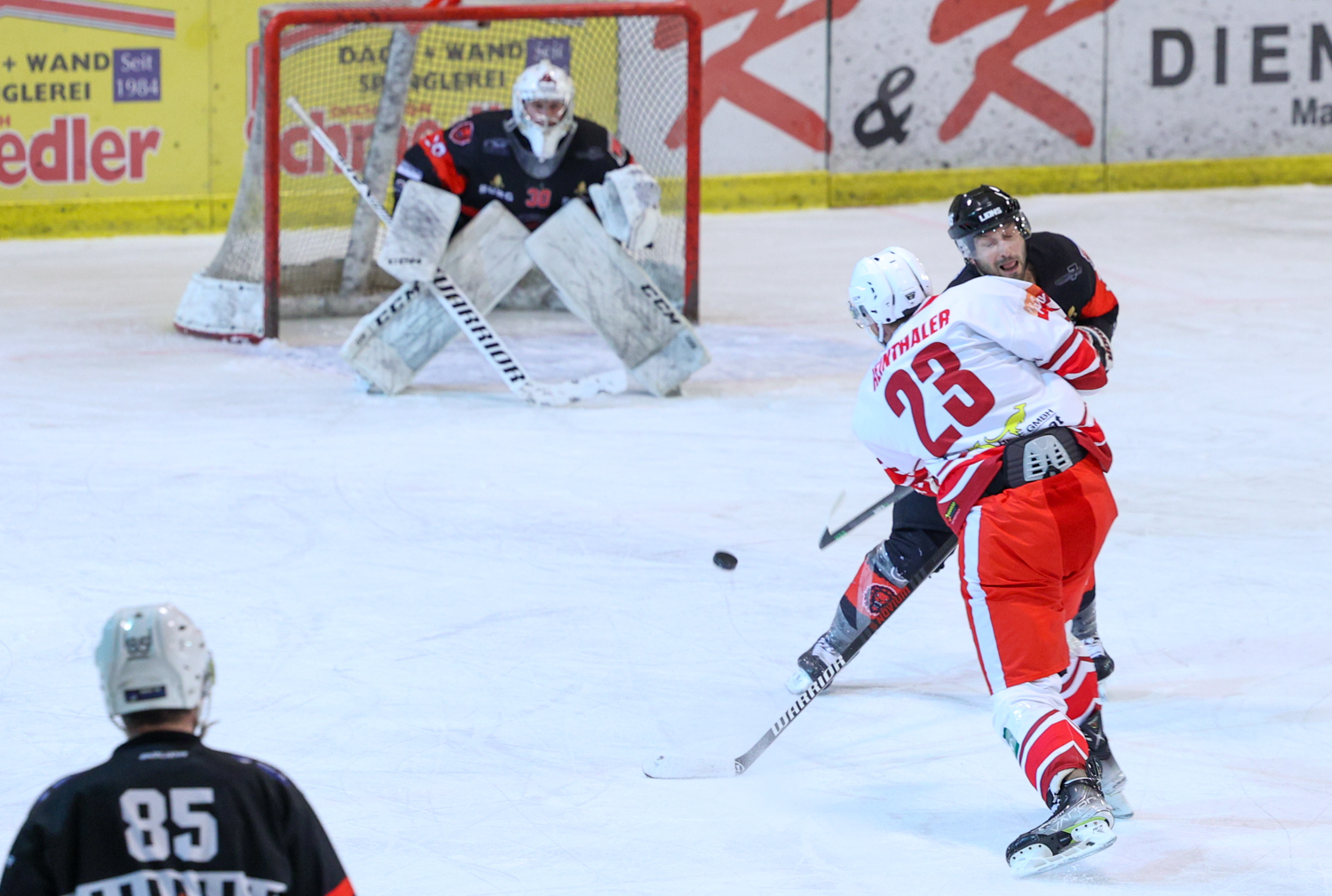 Die Szenen wechselten rasant. Kompromisslose Zweikämpfe, gute Hits, das Spiel blieb intensiv und nahm in Minute 17. eine neue Wendung. Marco Herzl nutzte einen Rebound zum Gleichstand, fixierte damit den Pausenstand.