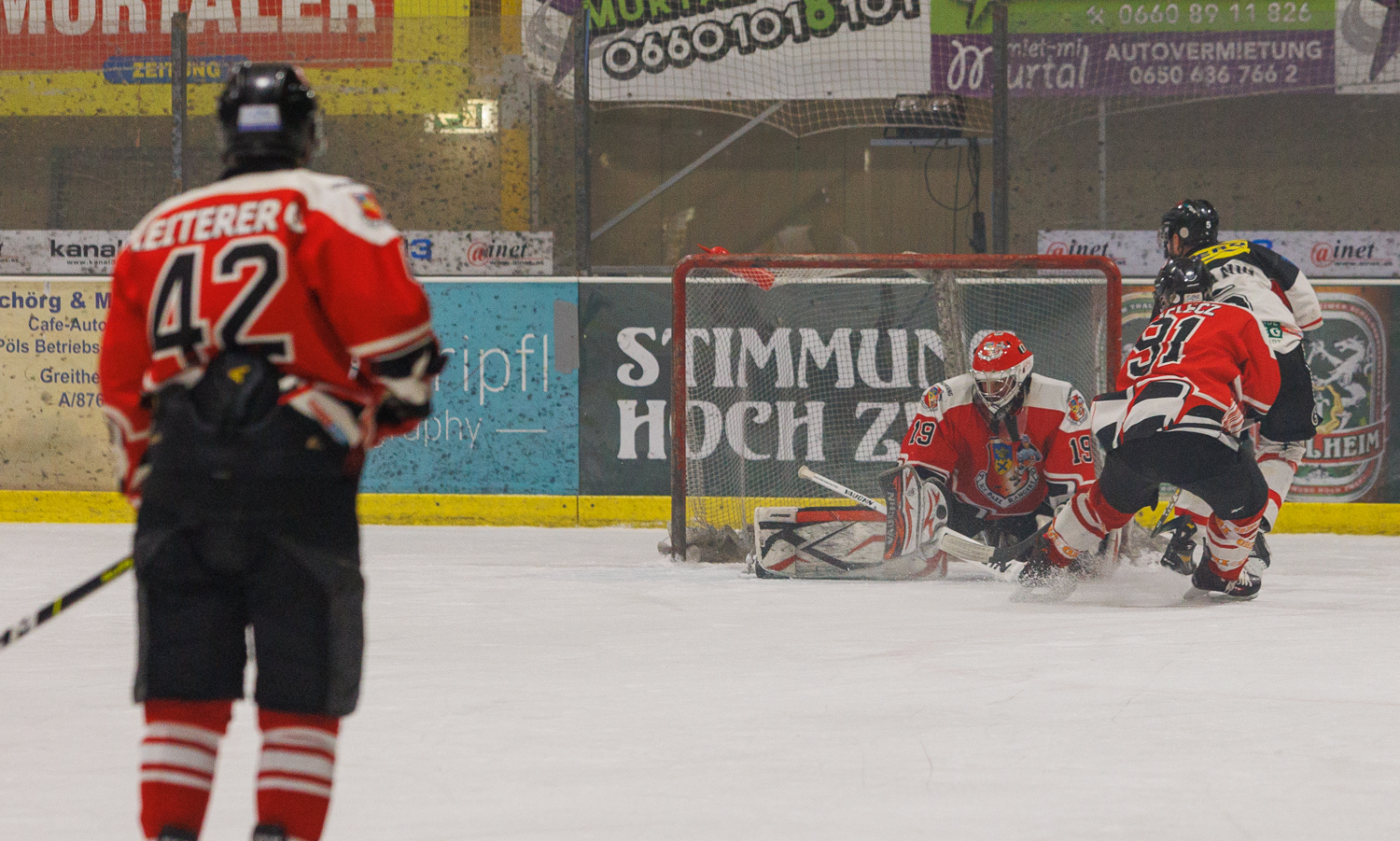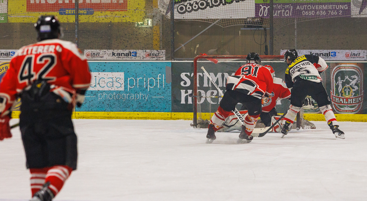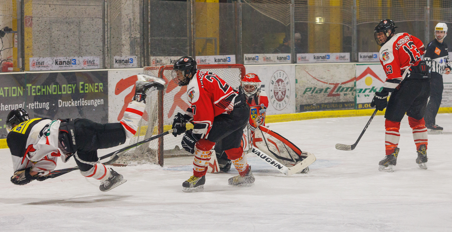 Der Treffer hätte aber gar nicht fallen dürfen, da dem Gegenstoß der Gäste ein klares Foul an Christian POPATNIG voranging, aber wie mehrmals in diesem Spiel, blieb die Hand eines der beiden Referees unten…somit wurde den Lions auch die Möglichkeit genommen, in einem Powerplay eventuell noch auszugleichen, denn die letzten Minuten waren die Zeltweger ordentlich am Drücker, holten auch Martin VOLLMANN vom Eis und gingen „all in“.