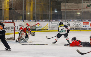 Die Effizienz machte letztlich den Unterschied aus, während die Lions mehrere eins gegen null Chancen und weitere gute Möglichkeiten liegen ließen, vollendete Gerald Fischer eines der ganzen wenigen Breaks der Langenwanger zum vier zu zwei (43:07 min/ EQ)…